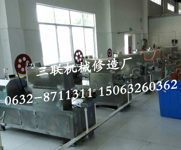 2.可生产产品:人造排(圆筒表面小波纹状),人造豆皮(圆筒表面光滑洁亮),豆筋(呈绳状),豆花、豆丝(牛排切丝或豆皮切丝),素鸡翅(有大中小各型),豆虾(如同虾仁一样),豆肠,腐竹带等。